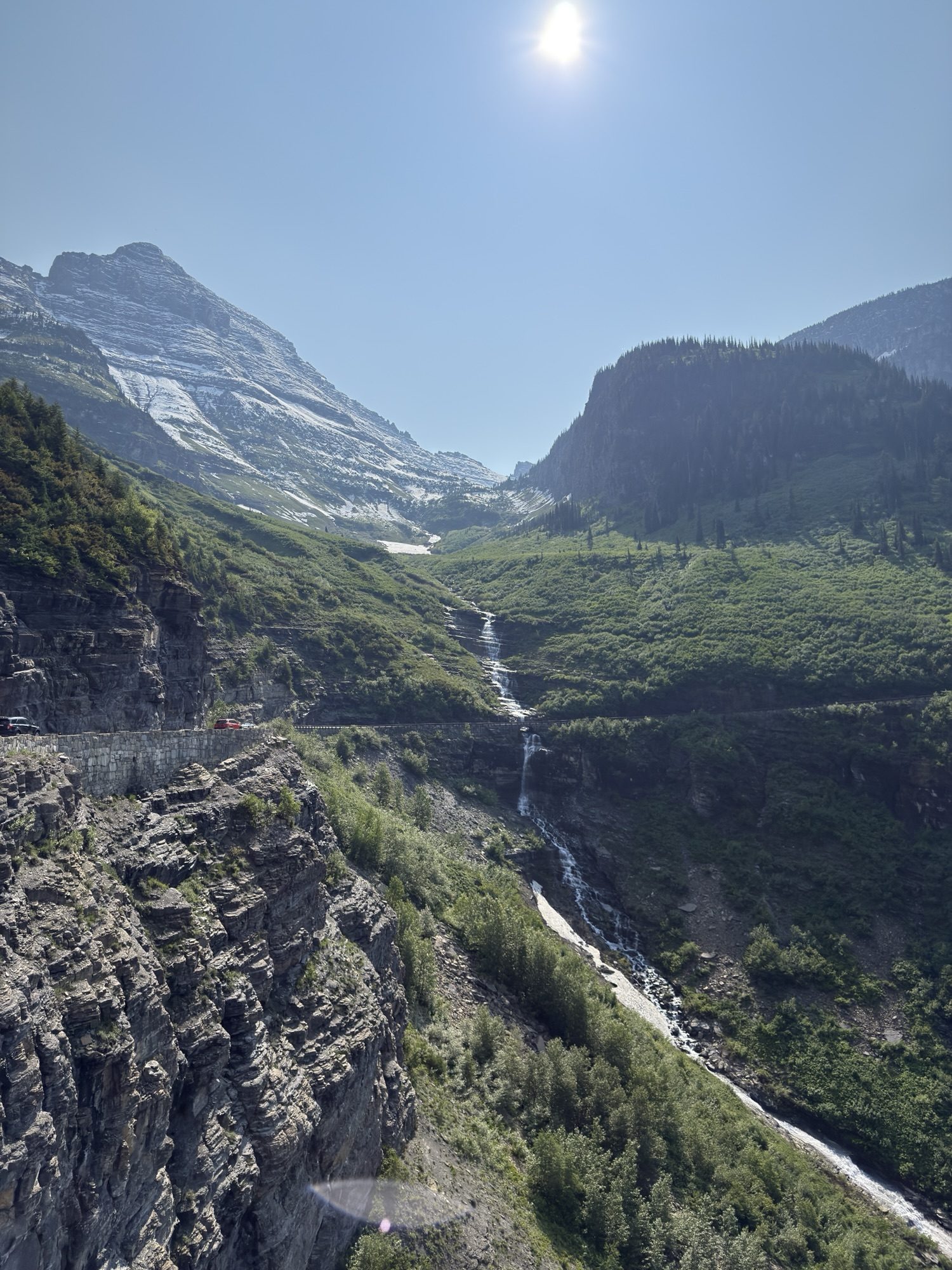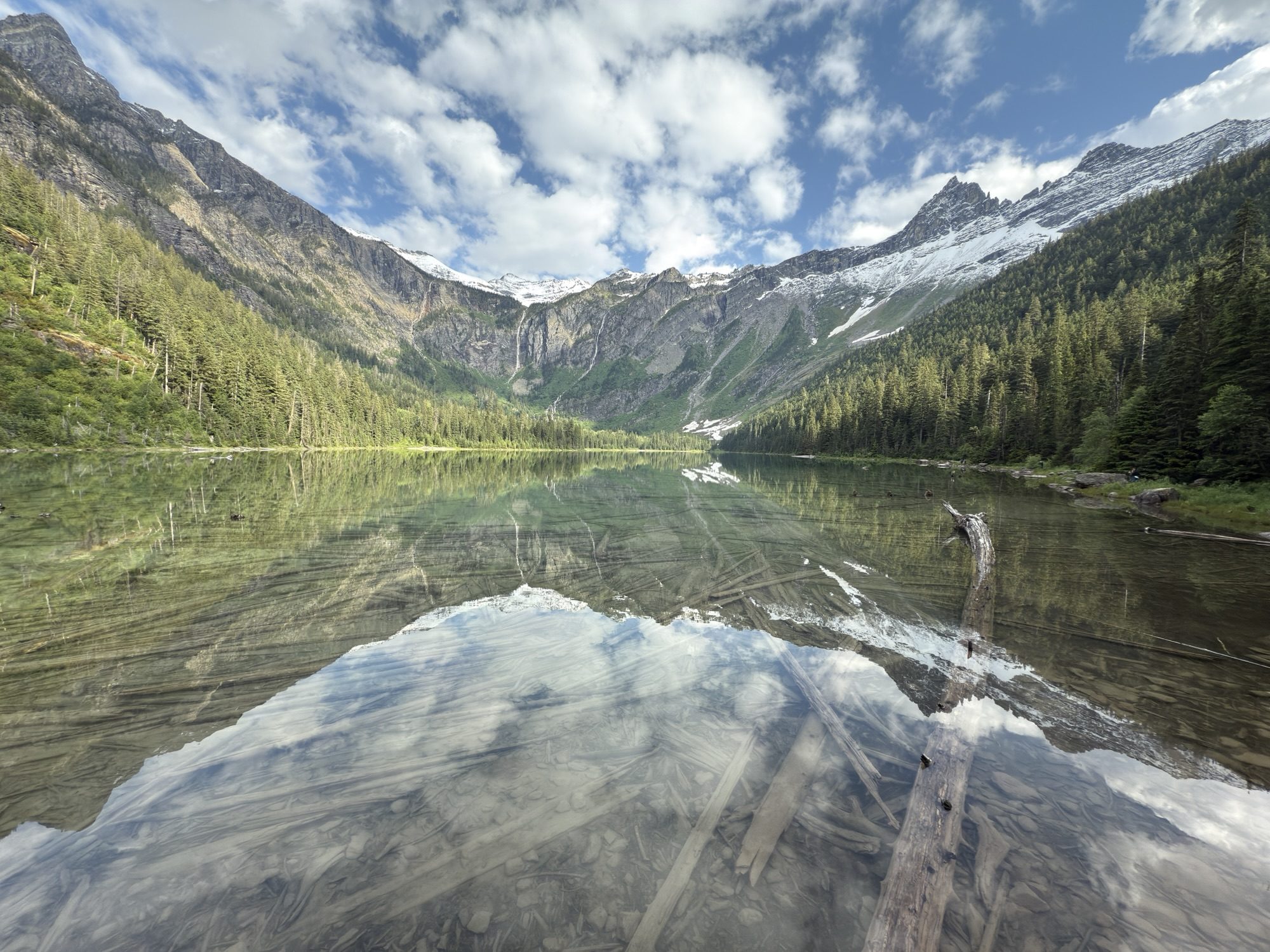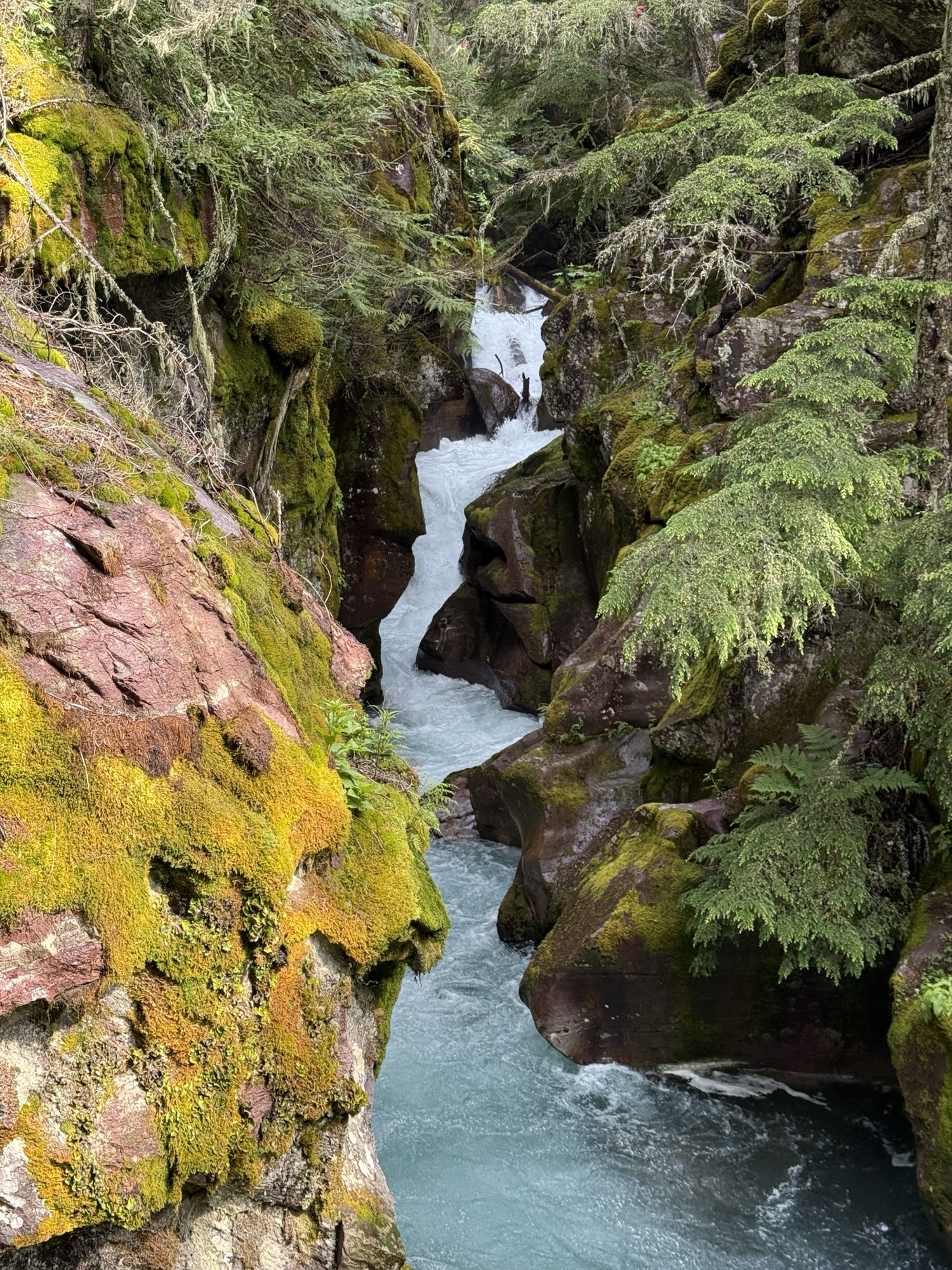 When the skies finally cleared, the Trail of the Cedars and the hike to Avalanche Lake were the perfect way to stretch my legs. The trail winds through a lush, old-growth forest and follows a creek to the stunning lake surrounded by waterfalls and towering peaks. On the way, I even spotted a bear in the distance—an unforgettable moment.